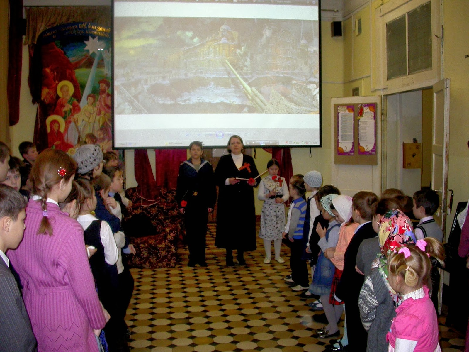 В день 70-летия полного снятия блокады Ленинграда в школьном храме протоиерей Алексий Богомолов совершил заупокойную литию по погибшим и скончавшимся в дни блокады. Затем состоялась торжественная линейка. В школьной трапезной был символический завтрак, состоявший из кусочка хлеба и чая. Во второй половине дня состоялся просмотр фильма "Великая война. Блокада".
